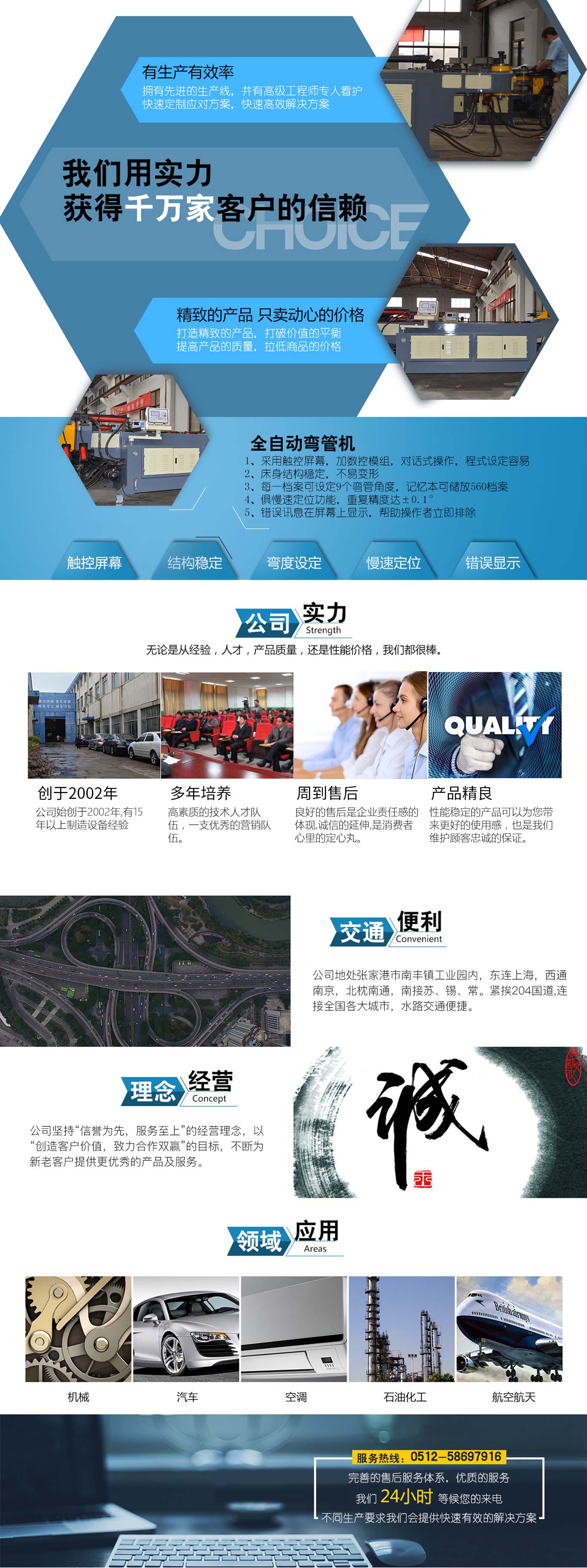 張家港市雙和機(jī)械制造有限公司始建于2001年,占地面積12000平方米,南鄰蘇州、無錫、上海,東鄰常州、南京,交通便利,位長(zhǎng)三角中間地段,風(fēng)景優(yōu)美的張家港。 雙和公司至創(chuàng)立開始,引進(jìn)了國外的設(shè)計(jì)制造理念,組建了企業(yè)生產(chǎn)管理優(yōu)秀團(tuán)隊(duì),致力于管材加工機(jī)械研發(fā)、設(shè)計(jì)、制造。創(chuàng)新的設(shè)計(jì)理念,嚴(yán)格的質(zhì)量把關(guān),專業(yè)的售后服務(wù),不斷提升了我在整個(gè)行業(yè)的影響力。 雙和公司生產(chǎn)的系列產(chǎn)品分為彎管機(jī)、切管機(jī)、縮管機(jī)、磨齒機(jī)、伺服彎管機(jī)、數(shù)控彎管機(jī)、液壓彎管機(jī)、自動(dòng)切管機(jī)、管端成型機(jī)、倒角機(jī)、大弧滾圓機(jī)、鋁切機(jī)、壓彎?rùn)C(jī)等管材加工機(jī)械,廣泛用于航天業(yè)、造船業(yè)、汽車制造、鍋爐制造、自行車、摩托車、體育健身器材、管制品家...